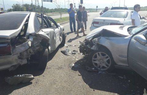 Столкновение сразу четырёх машин произошло на перекрёстке улиц Момышулы и Акын Сара.
