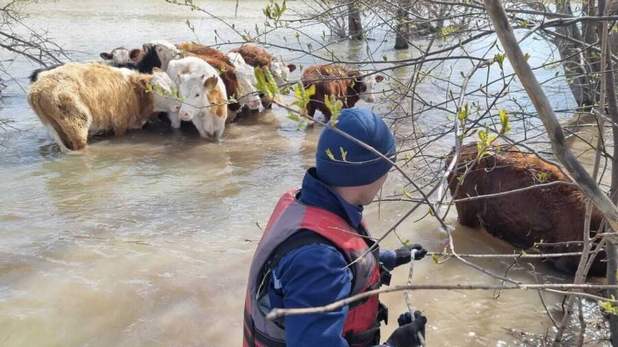 Сотрудники ДЧС ВКО помогли пастуху спасти телят с затопленного острова