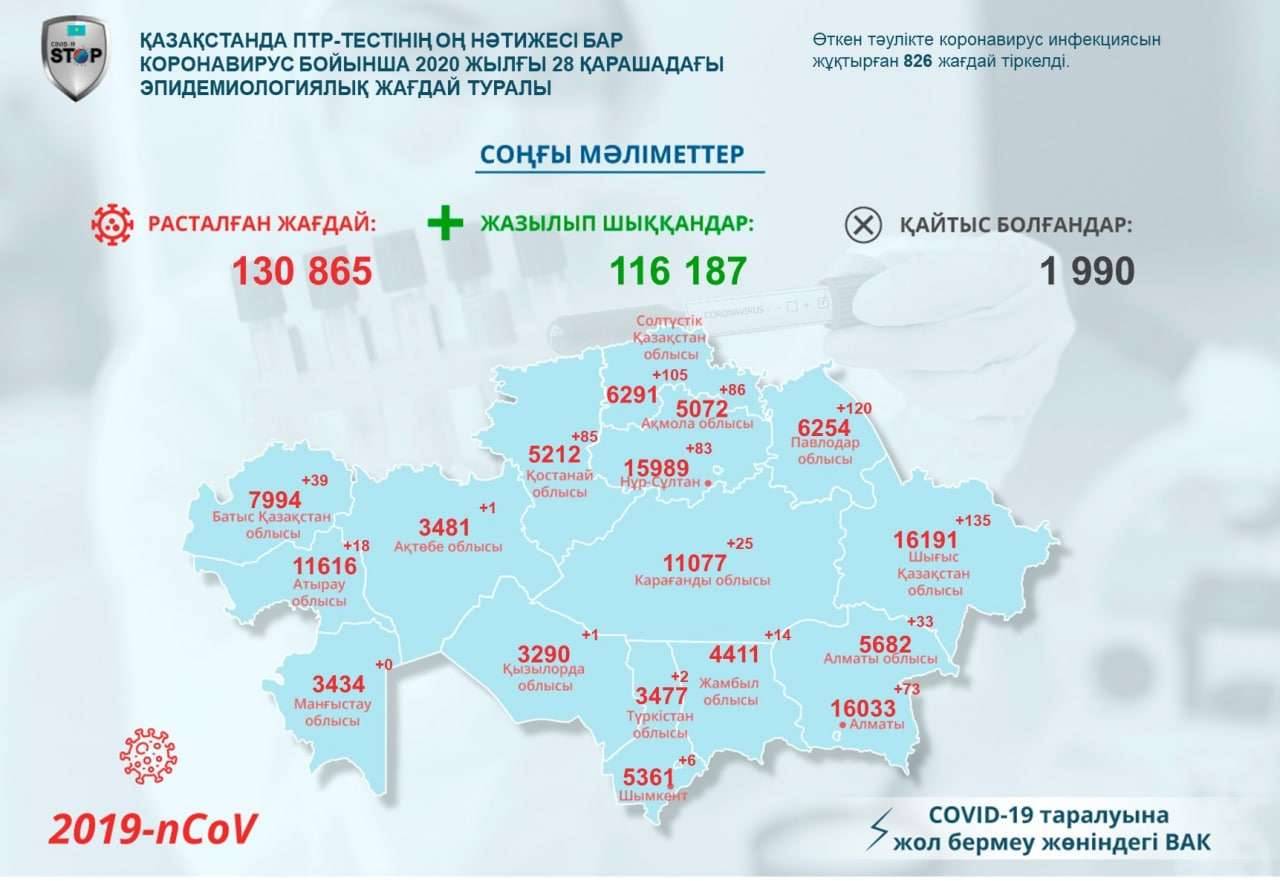 Республика бойынша барлығы 130 865 адам коронавирус инфекциясын жұқтырса, емделіп жазылғандары – 116 187.