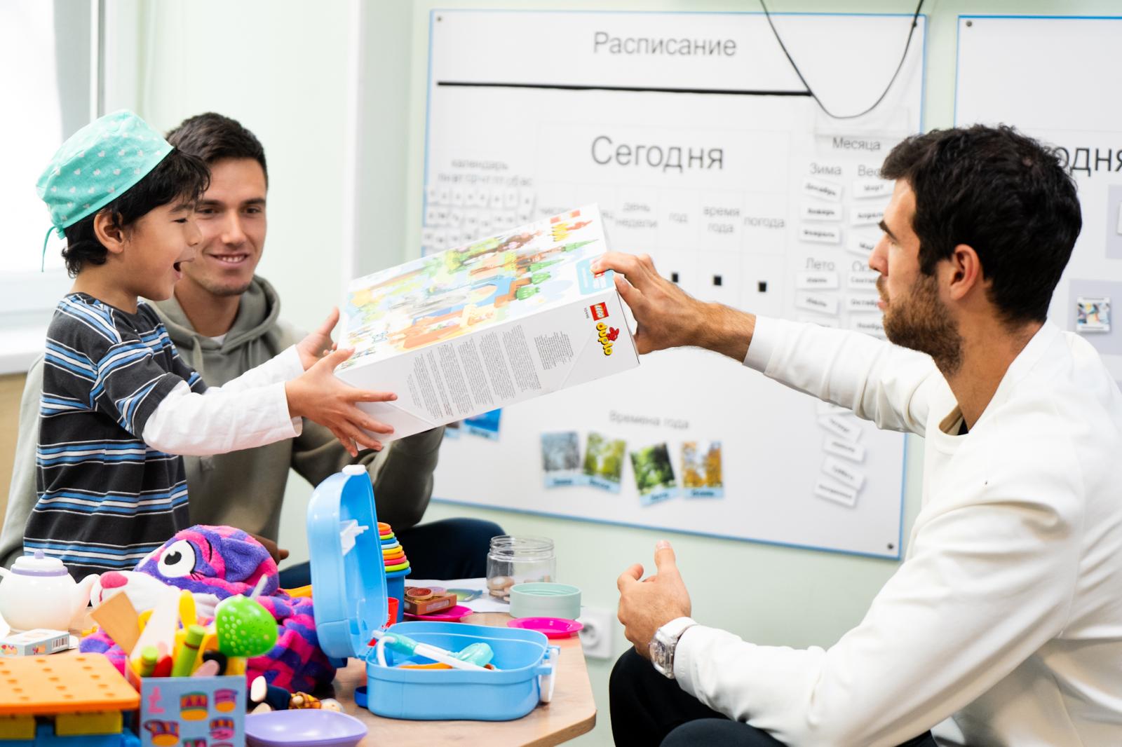 Almaty Open турнирінің өткен жылғы жеңімпазы Карен Хачанов пен әлемнің 52-ші ракеткасы Фабиан Марожан бірнеше ойын және оқу сабақтарына қатысып, тәрбиешілермен және ата – аналармен әңгімелесті, сондай-ақ балалармен бірге уақыт өткізіп, бірге сурет салып, дамытуға арналған ойындарды ойнады. Орталықтың тәрбиеленушілері үшін атақты спортшылардың келуі нағыз мерекеге айналды: қонақтар әр балаға көңіл бөліп, жылы жымиып, әзіл айтып, қолдау білдірді.