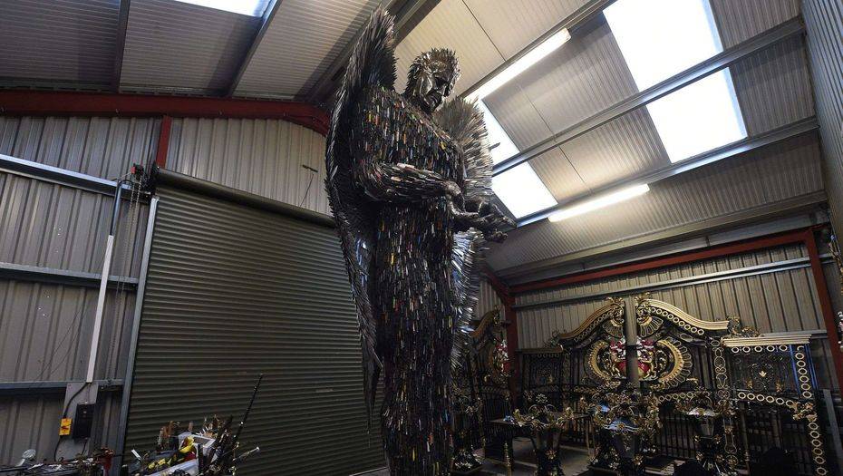 Спустя два года британцы увидели то, что их восхитило и ужаснуло. Перед публикой предстал гигантский ангел, ощетинившийся ста тысячами блестящих лезвий, которые скульптору пришлось предварительно очищать от ржавчины и крови.