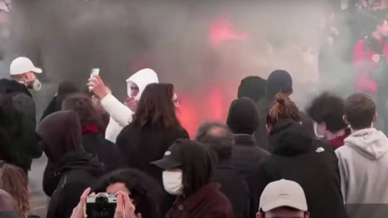 Тысячи граждан Франции вышли на митинг, чтобы осудить "насильственный подход" правительства после того, как премьер-министр Элизабет Борн объявила о принятии закона о повышении пенсионного возраста с 62 до 64 лет к 2030 году без согласования с депутатами парламента. Для разгона протестующих, которые начали поджигать машины и возводить баррикады, полиция использовала слезоточивый газ и водомёты. Из-за начавшегося пожара люди начали расходиться.