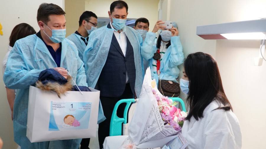 Матерей младенцев поздравили заместитель акима города Асхат Оралов и руководитель управления общественного здравоохранения Тимур Муратов. Девушкам вручили благодарственные письма от имени Алтая Кульгинова и детские комбинезоны.