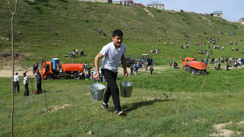 Деревья сажали школьники и студенты, рабочие и служащие, приняли участие в акции и аким Южно-Казахстанской области Жансеит Туймебаев, аким города Нурлан Сауранбаев и советник Постоянного представителя ООН в Казахстане Ирина Горюнова.