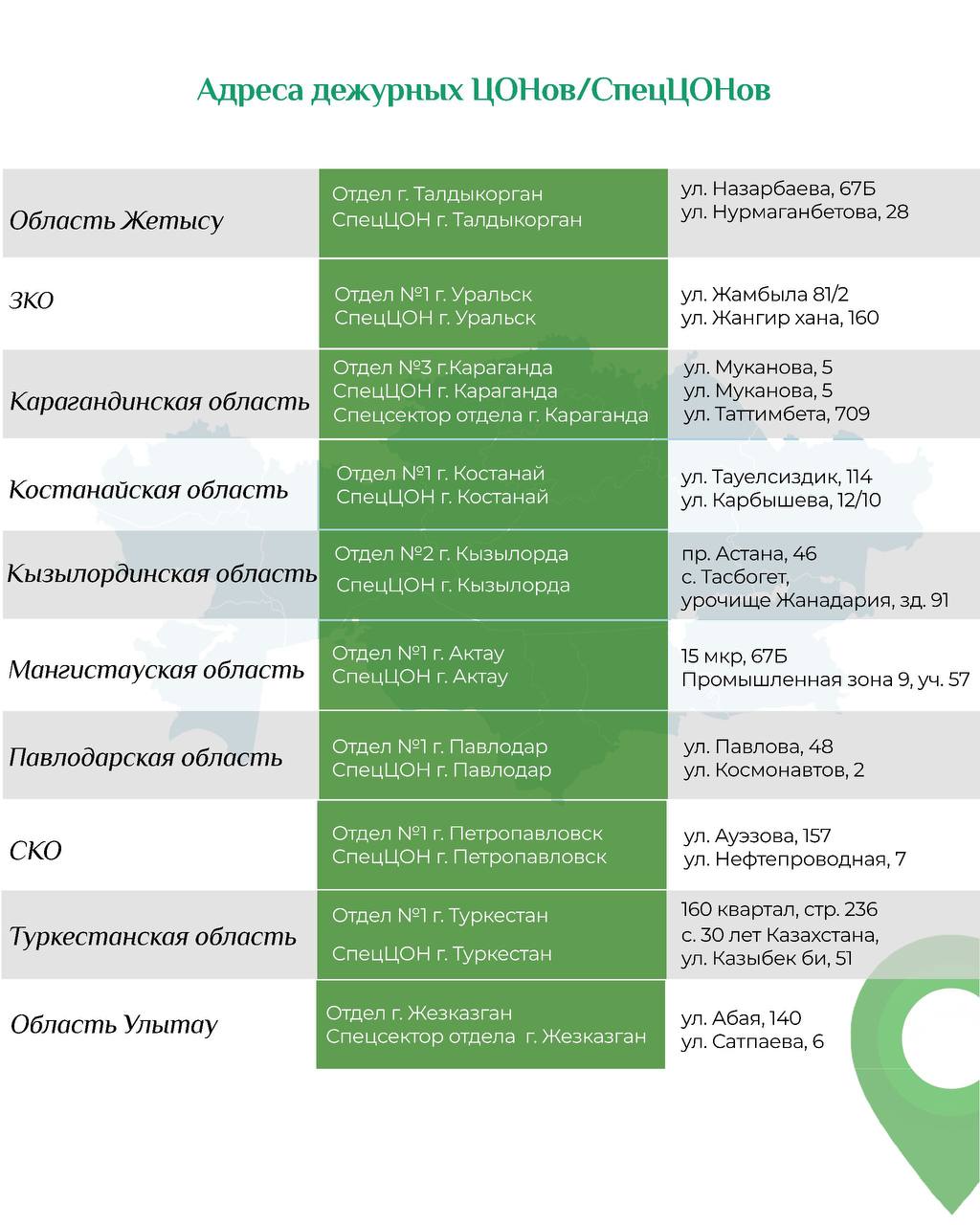 - спецЦОН №4 – микрорайон Кемел, улица Аксуат, 118;