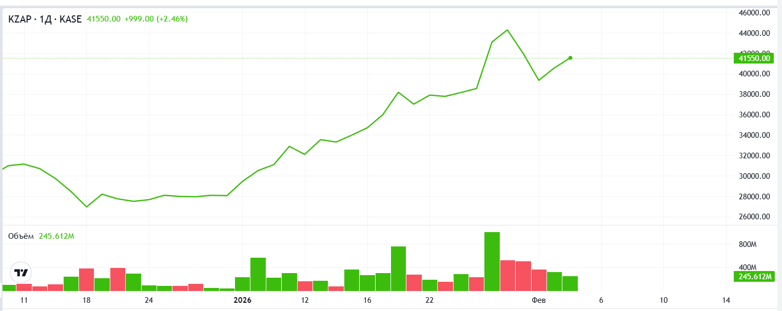 Так, на конец 2025 года одна акция нацкомпании стоила 28 059 тенге. Цена последней сделки 30 января 2026 года составила уже 41 950 тенге.