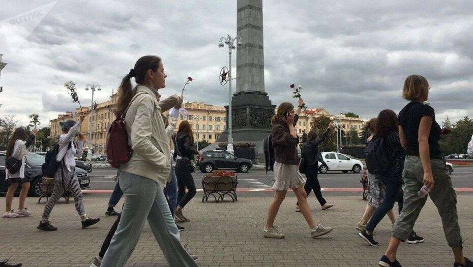 Белорусские женщины организовали мирную акцию в крупных городах страны. Они выстроились в шеренгу на центральных улицах, в руках держали цветы, плакаты и транспаранты, призывающие прекратить насилие, сообщает "Sputnik Беларусь".