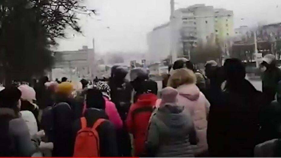Люди пришли на акцию с плакатами и транспарантами. К месту встречи участников подъехали микроавтобусы с силовиками. Они начали разгонять митингующих и применили слезоточивый газ.