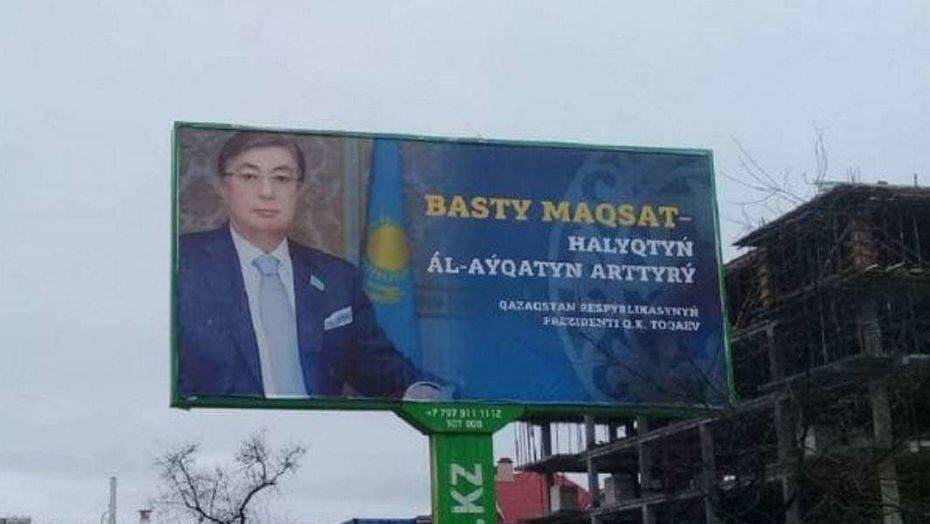 После этого билборды с Токаевым заменили на рекламные щиты с логотипом "Рухани жаңғыру".