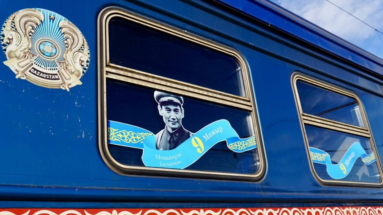 "В честь праздника лацканы пиджаков проводников украсила казахстанская лента Победы. Первые пассажиры с удовольствием фотографировались на фоне поезда", – рассказали в пресс-службе национального перевозчика.