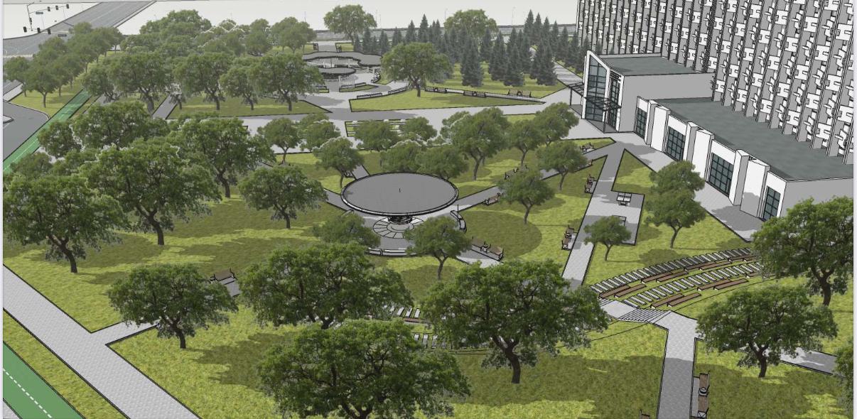 На территории высадят крупномерные деревья, кустарники и газоны, а также установят новую систему автополива.