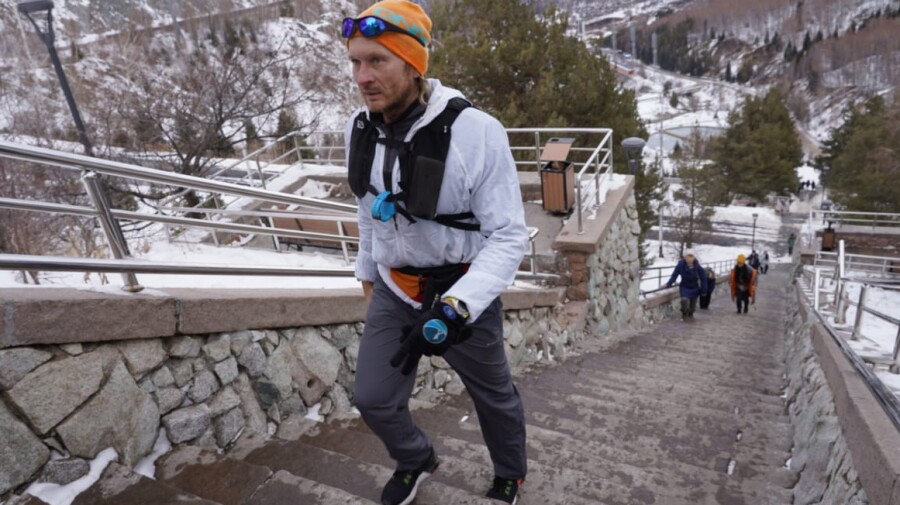 Алматинец Юрий Пономарёв попал в Книгу рекордов Казахстана, поднявшись 20 раз подряд по лестнице Медеу за шесть часов и 42 минуты.