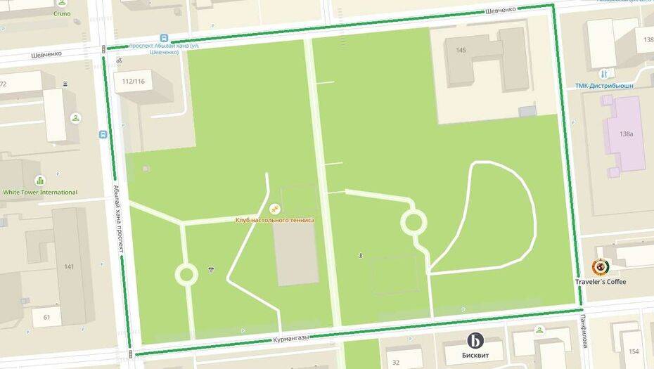 В сентябре руководитель управления городского планирования и урбанистики Алмасхан Ахмеджанов сообщил, что территорию в квадрате улиц Панфилова, Абылай хана, Шевченко и Курмангазы превратят в парковую зону для города.
