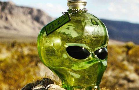 "Неземной" напиток продаётся в соответствующей бутылке – в форме зелёной головы пришельца.