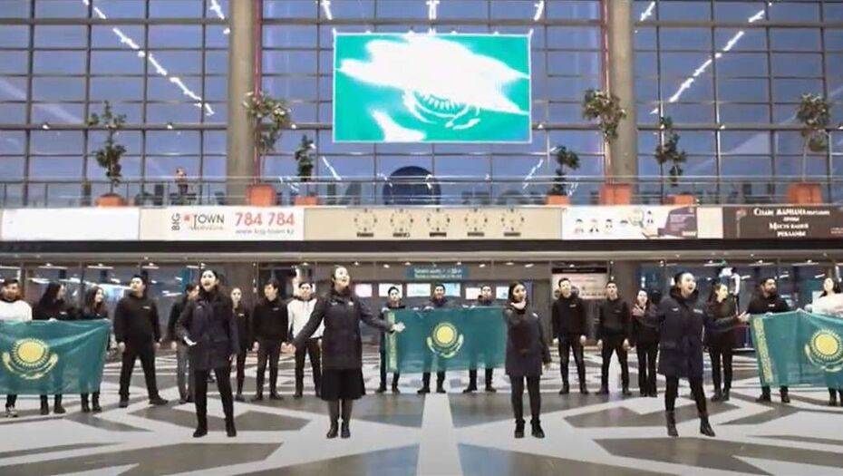 Театр "Астана мюзикл" приятно удивил пассажиров Международного аэропорта Нурсултан Назарбаев. Артисты спели песни "Айтым сәлем қаламқас" и "Керім-ау айдай".