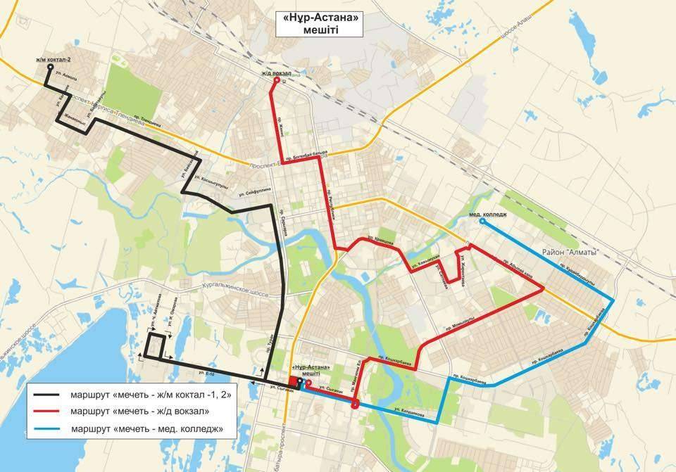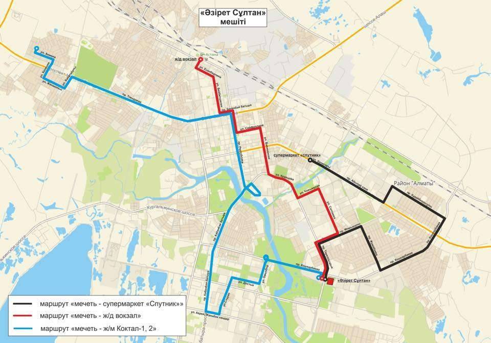 До мечети "Нұр Астана" автобусы будут курсировать от остановок:
