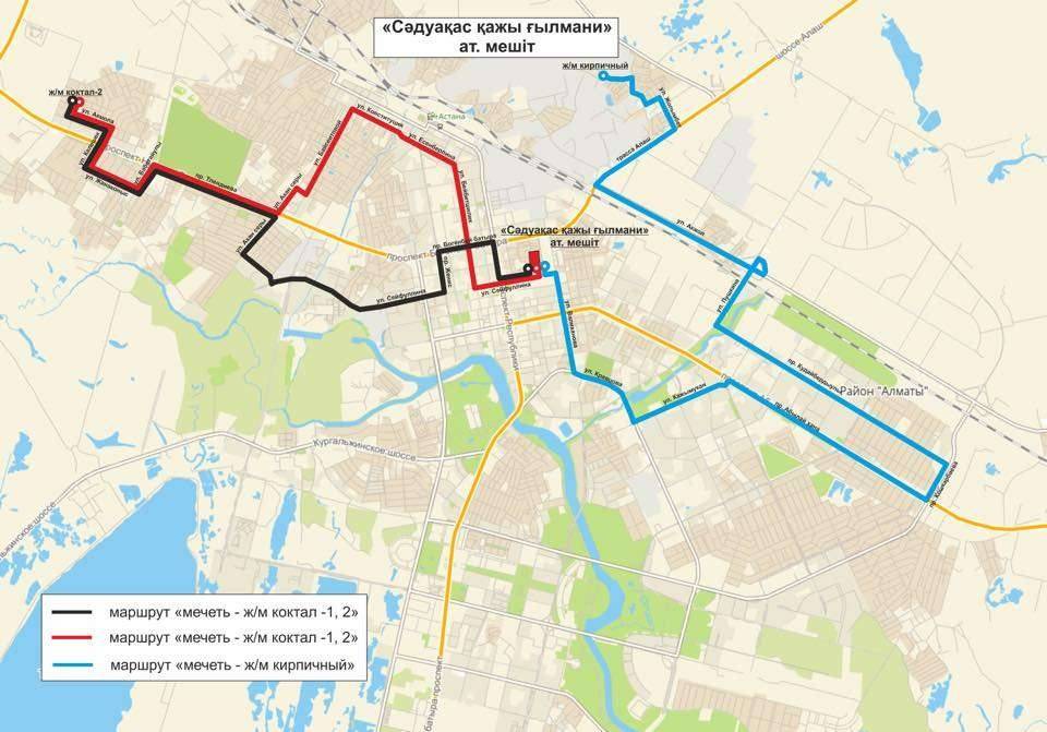 Astana LRT во время месяца Рамазана запустила несколько автобусных маршрутов к трём мечетям. Об этом сообщается на официальной странице компании в Facebook.