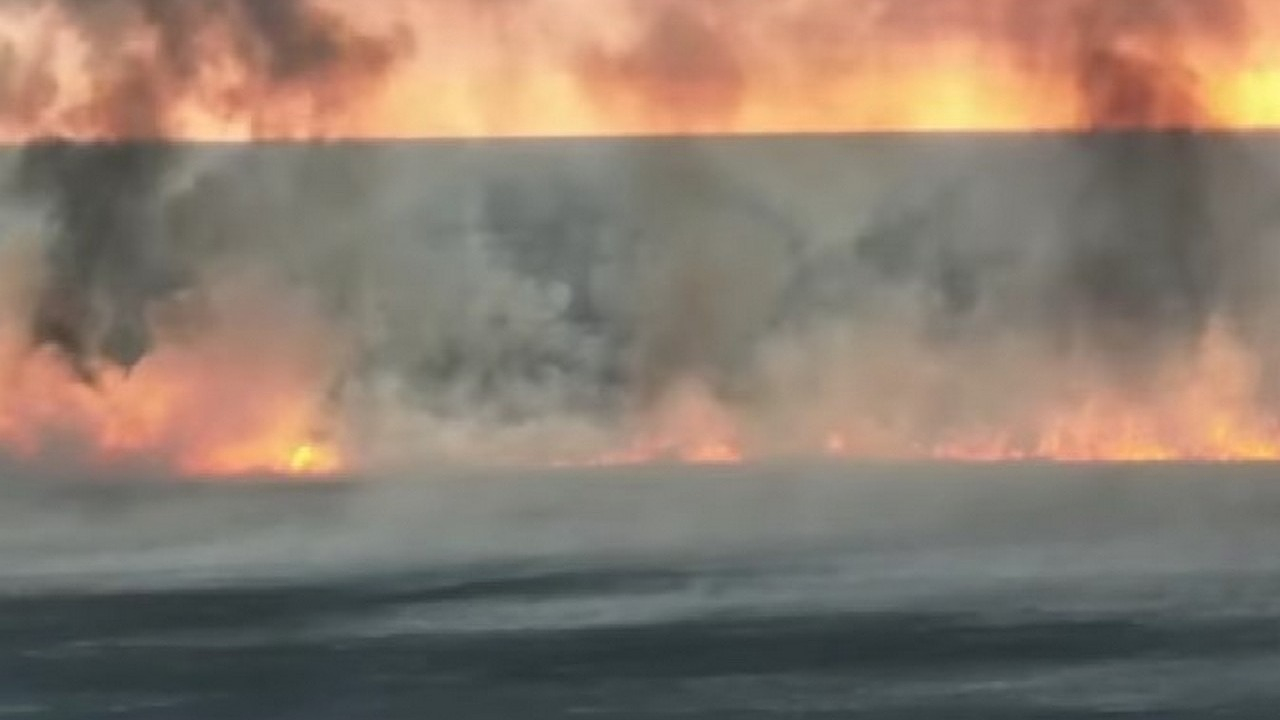 В 40 км от Атырау вторые сутки горит камыш, жители города жалуются на гарь и смог.