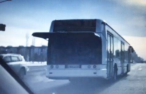 Городской маршрутный автобус с открытым люком для двигателя был замечен очевидцем в субботу, 23 января, на одной из центральных улиц Левобережья столицы. Автобус ехал по улице Орынбор, где расположены "Дом министерств", "Триумфальная арка" и другие значимые объекты города.