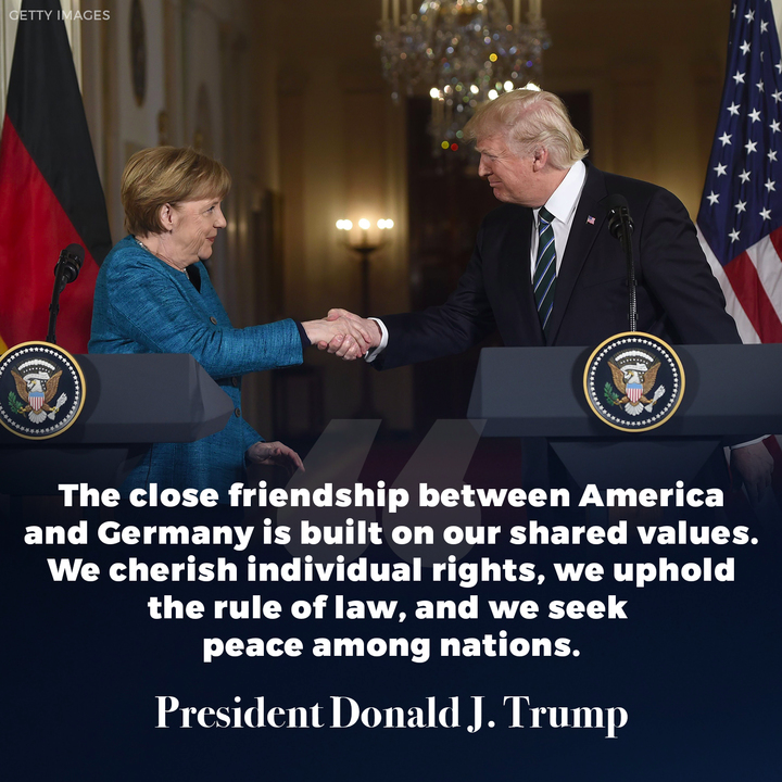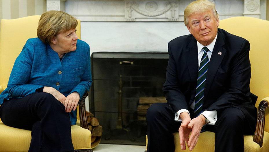 17 марта Меркель посетила Белый дом для встречи с президентом США. Во время протокольной съёмки журналисты предложили лидерам стран пожать друг другу руки. Меркель повернулась к Трампу, однако Трамп не отреагировал на её слова. Меркель выглядела озадаченной, на её лице появилось выражение, будто она хотела сказать: "Ну, значит, нет".