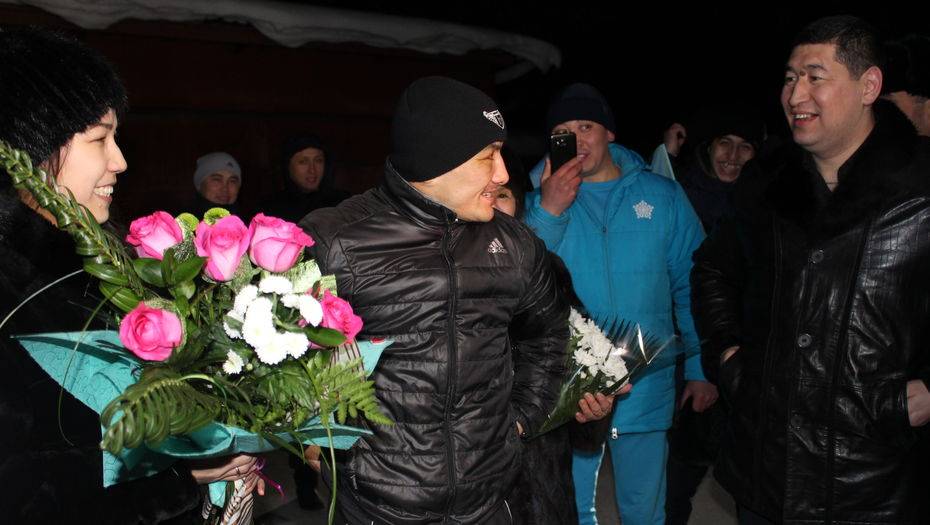 В Петропавловске в детско-юношеской школе бокса родные и спортсмены встретили чемпиона мира, обладателя поясов по версии WBA Super и IBO в легчайшем весе Жаната Жакиянова.