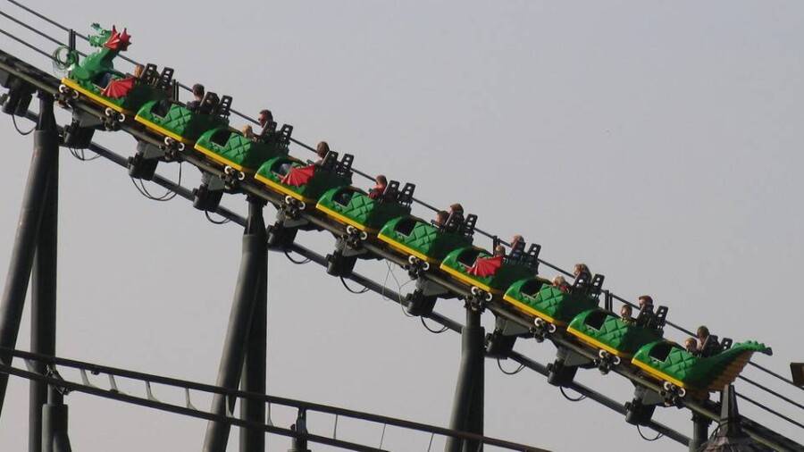 Согласно информации парка, скорость движения на американских горках достигает 29 км/ч.