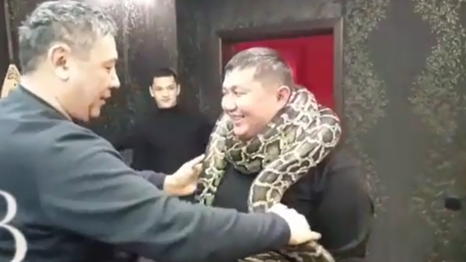 Видео якобы принятия присяги новым сотрудником антикоррупционной службы появилось в социальной сети Instagram. Судя по кадрам, новичка Марата Ильясова поздравляют с назначением. Ему укладывают на плечи огромного питона, который тут же обвивает шею своей жертвы. От дающего таким образом присягу требуют поклясться в честной борьбе с коррупционерами.