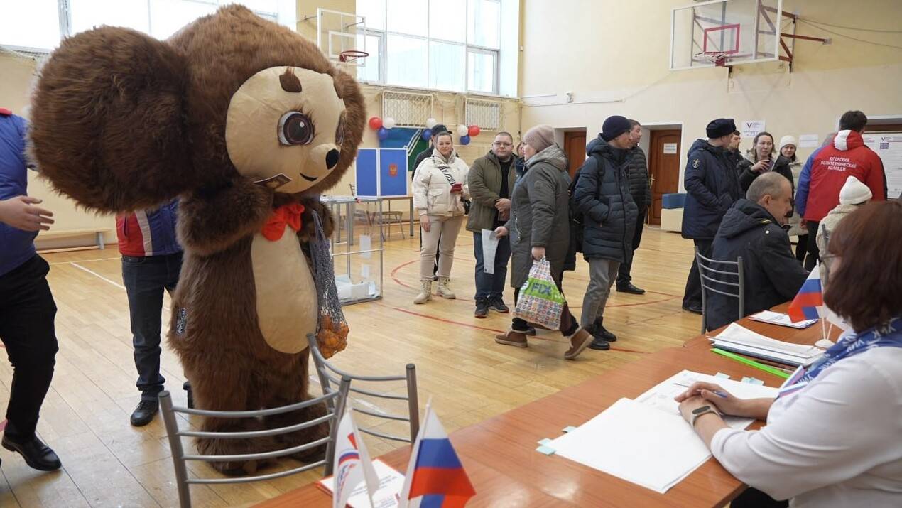 На выборы также пришёл персонаж советского знаменитого мультфильма – Чебурашка. И плюшевый медведь – Ванечка.