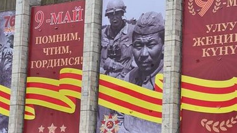 Центральную площадь Бишкека к 9 Мая украсили баннером, на котором изображён солдат вермахта (вооружённых сил гитлеровской Германии) и взятый в плен советский солдат азиатской внешности. Баннер сняли после возмущений кыргызстанцев, сообщает 24 kg.