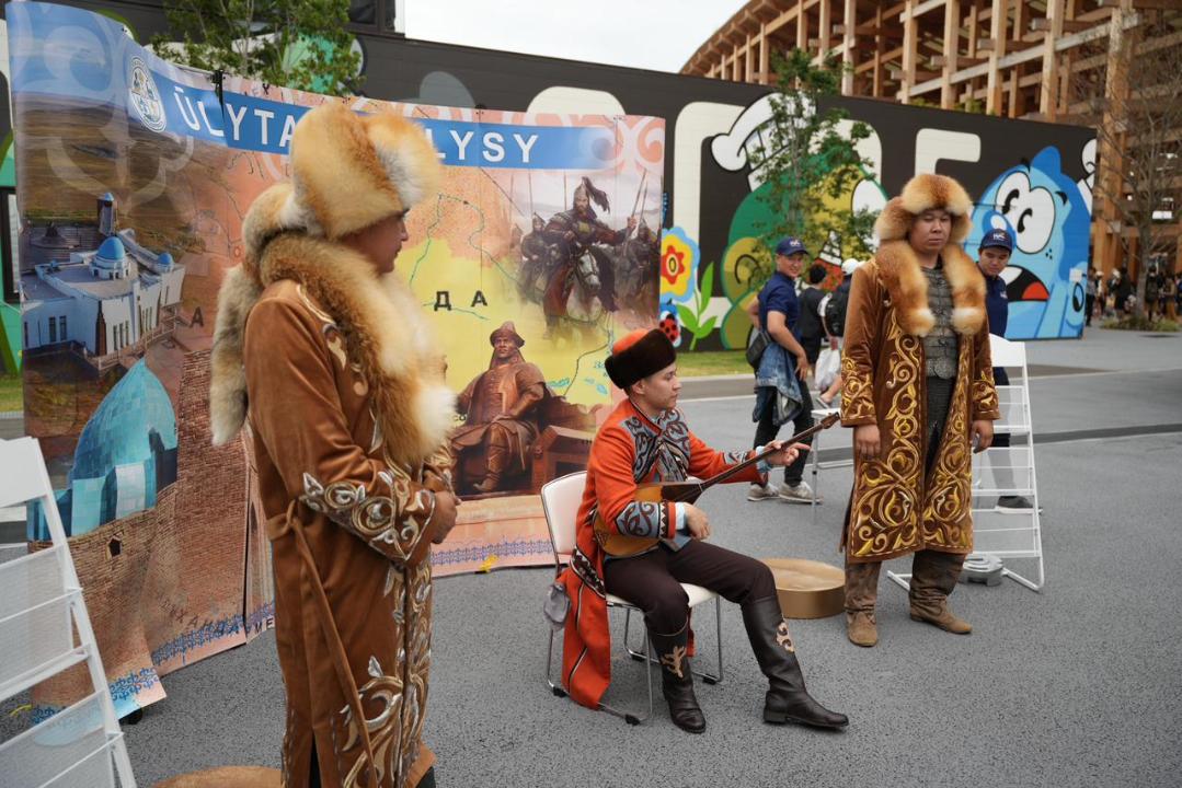 В Национальный день Казахстана здесь состоялась церемония поднятия государственного флага нашей страны, прошли официальные встречи гостей и участников, а также этно-концерт и парад с участием казахстанских артистов.