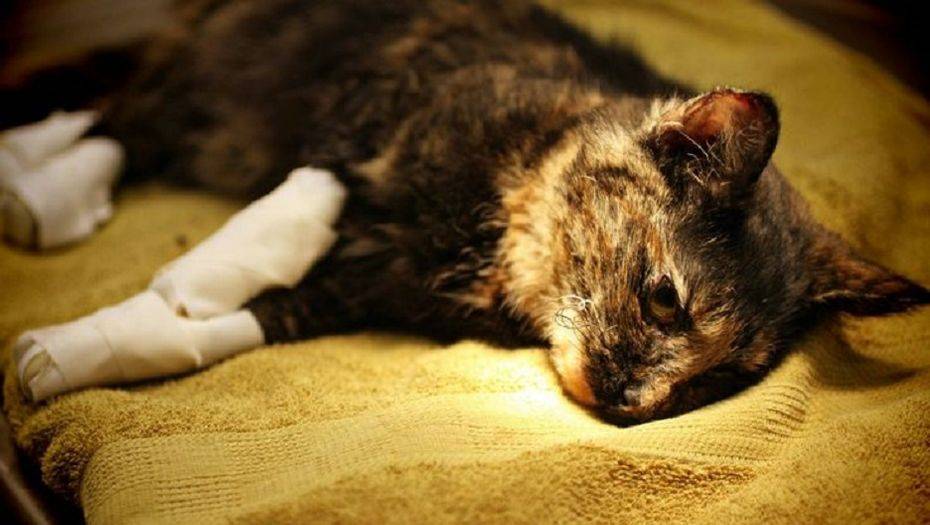 Кошка попала в руки волонтёров несколько дней назад. Как отметили в столичном Клубе добряков, она вынесла из кипятка четверых котят. За происшествием наблюдали свидетели, которые рассказали, что после потопа животное несколько дней зализывало себе раны.