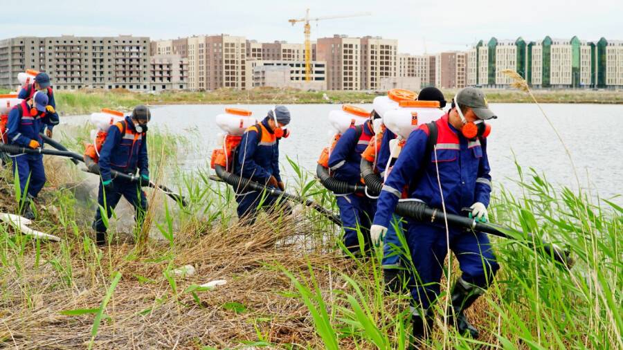 "Площадь обрабатываемых открытых территорий – 3112 га. На данный момент в районах Алматы, Байконыр и Сарыарка обработаны поймы рек Есиль, Акбулак, Сарыбулак, кладбища, водоёмы, камыши. Стартуют работы по обработке территории Есильского района", – говорится в сообщении.