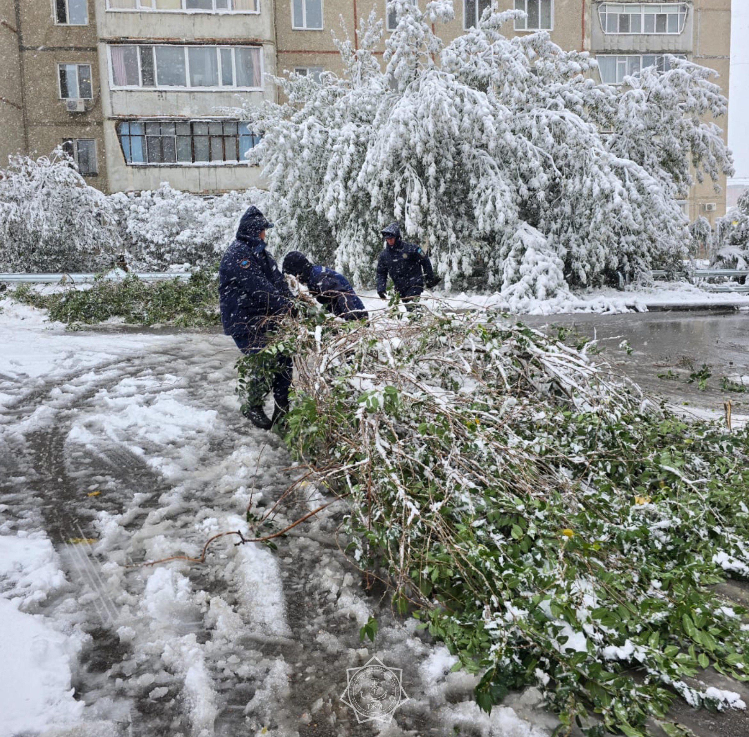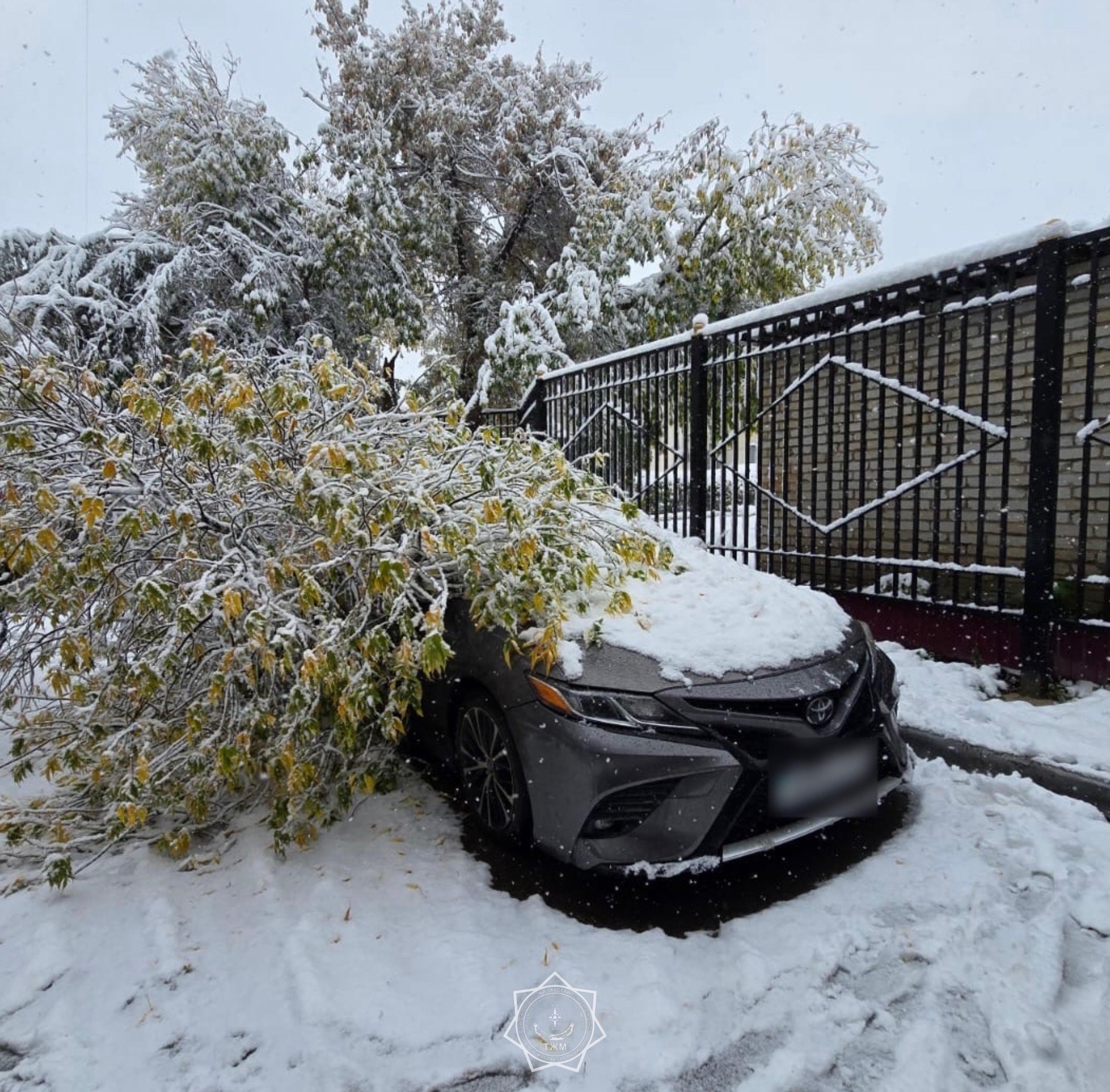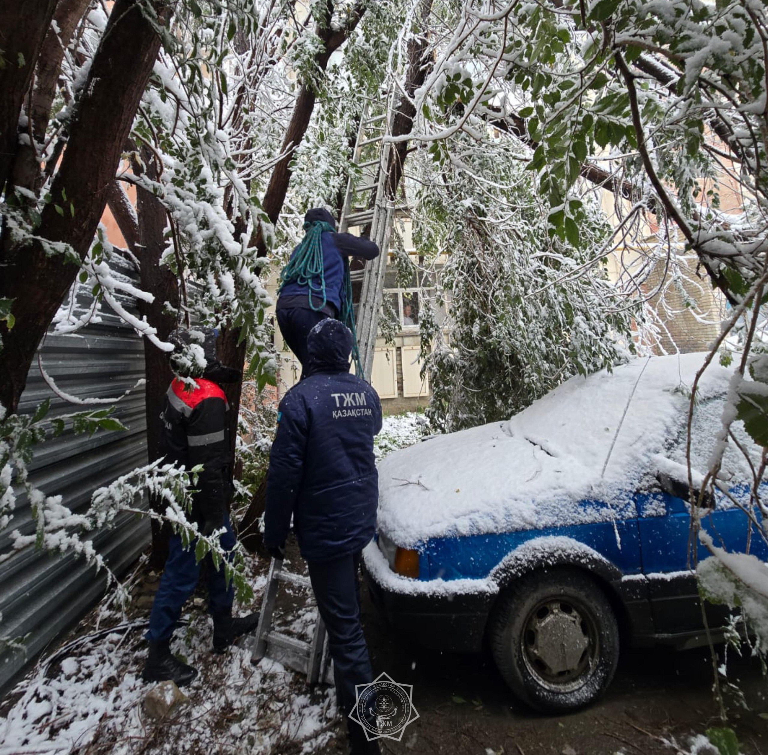 В Костанае во время снегопада деревья под тяжестью осадков падали на припаркованные автомобили, сообщила пресс-служба МЧС.
