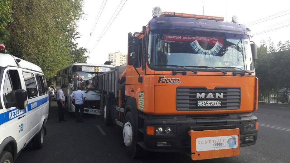 В ДВД Алматы сообщили, что автобус столкнулся с грузовиком MAN из-за несоблюдения дистанции между автотранспортными средствами. Точное количество пострадавших уточняется.