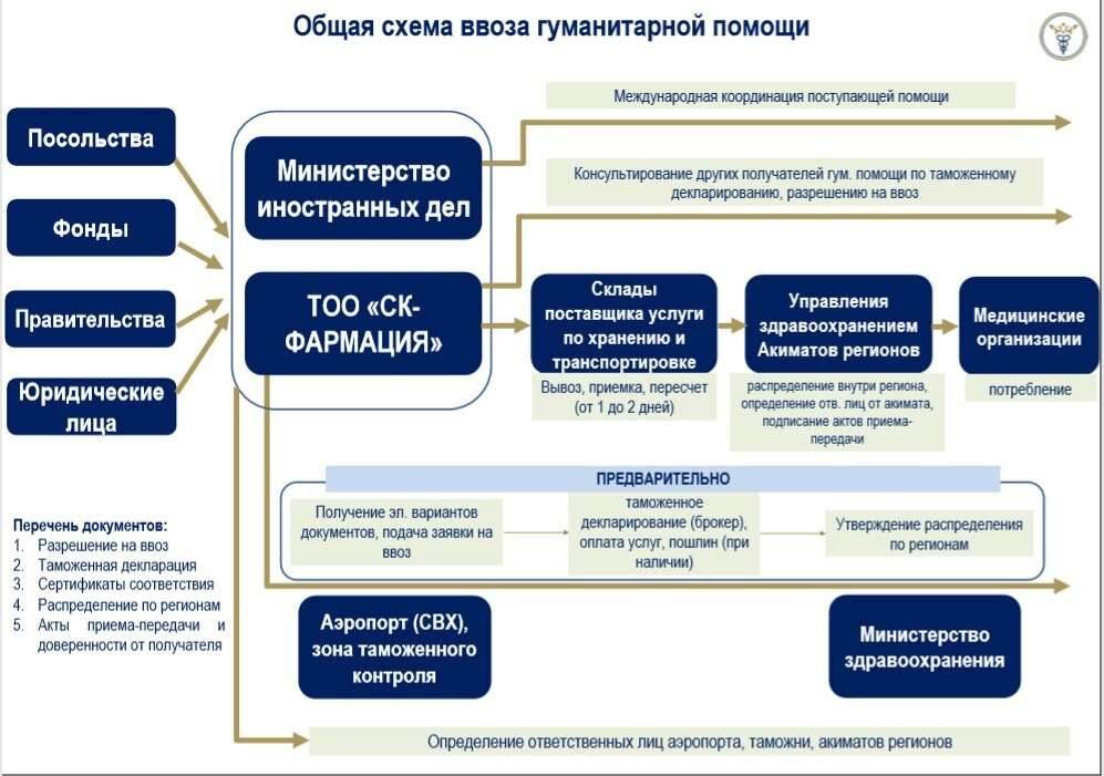 Все документы, разнарядку по направляемому в страну гуманитарному грузу будут высылать ещё до вылета самолёта из страны-отправителя, что позволит начать отгрузку прибывшей помощи буквально "с колёс". Благодаря новой схеме гуманитарный груз из Турции, прибывший ночью 14 июля в аэропорт Нур-Султана, в тот же день уже поступил на склад единого дистрибьютора.