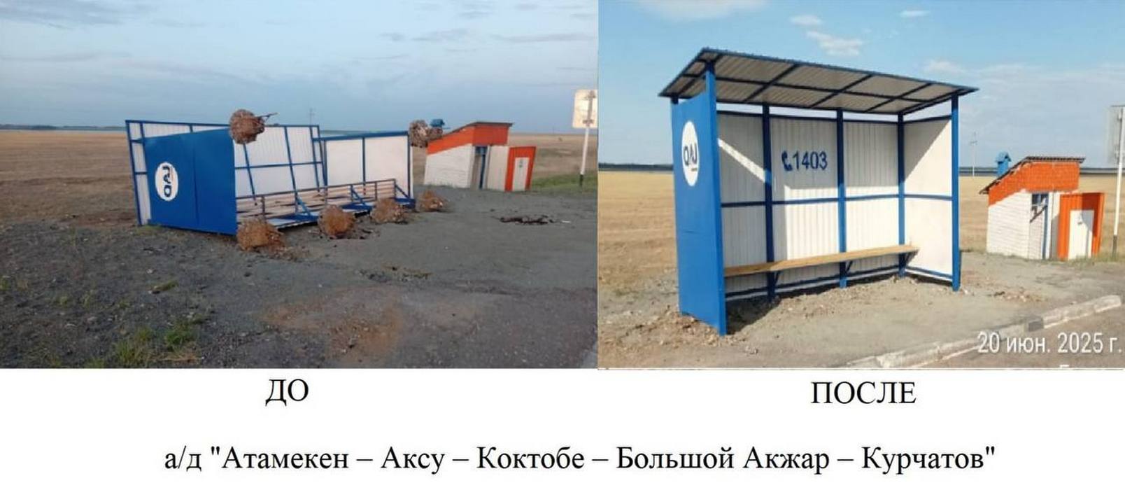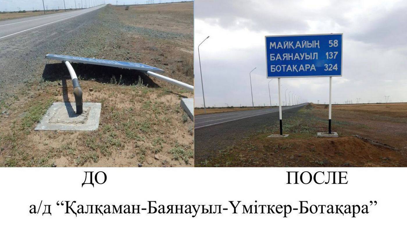 Из-за сильного ветра повредились дорожные знаки и остановочные павильоны, расположенные вдоль республиканских автомобильных дорог, сообщили в "КазАвтоЖоле".