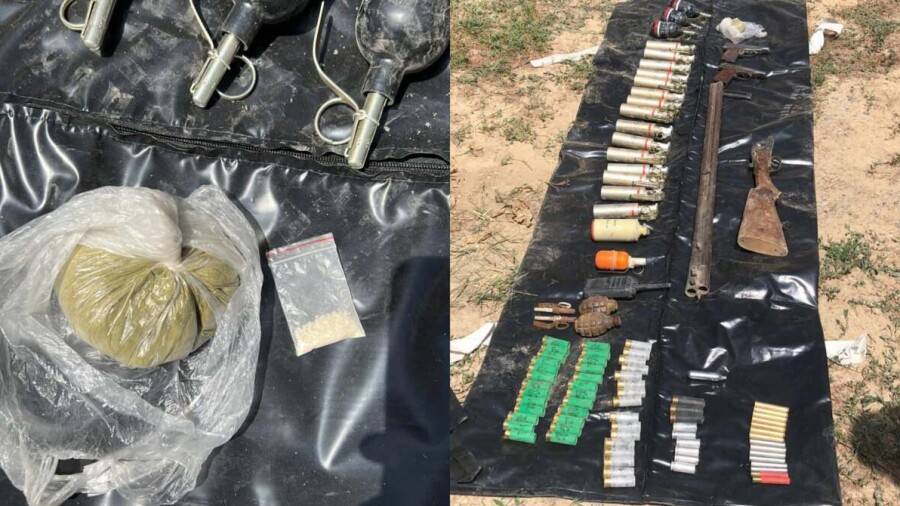 Ещё один схрон нашли в лесополосе вдоль Большого Алматинского канала. Там был обрез гладкоствольного двуствольного ружья, газовый пистолет с магазином, пистолет Blow F92 без магазина, четыре гранаты, 39 патронов разного калибра, а также радиостанции.