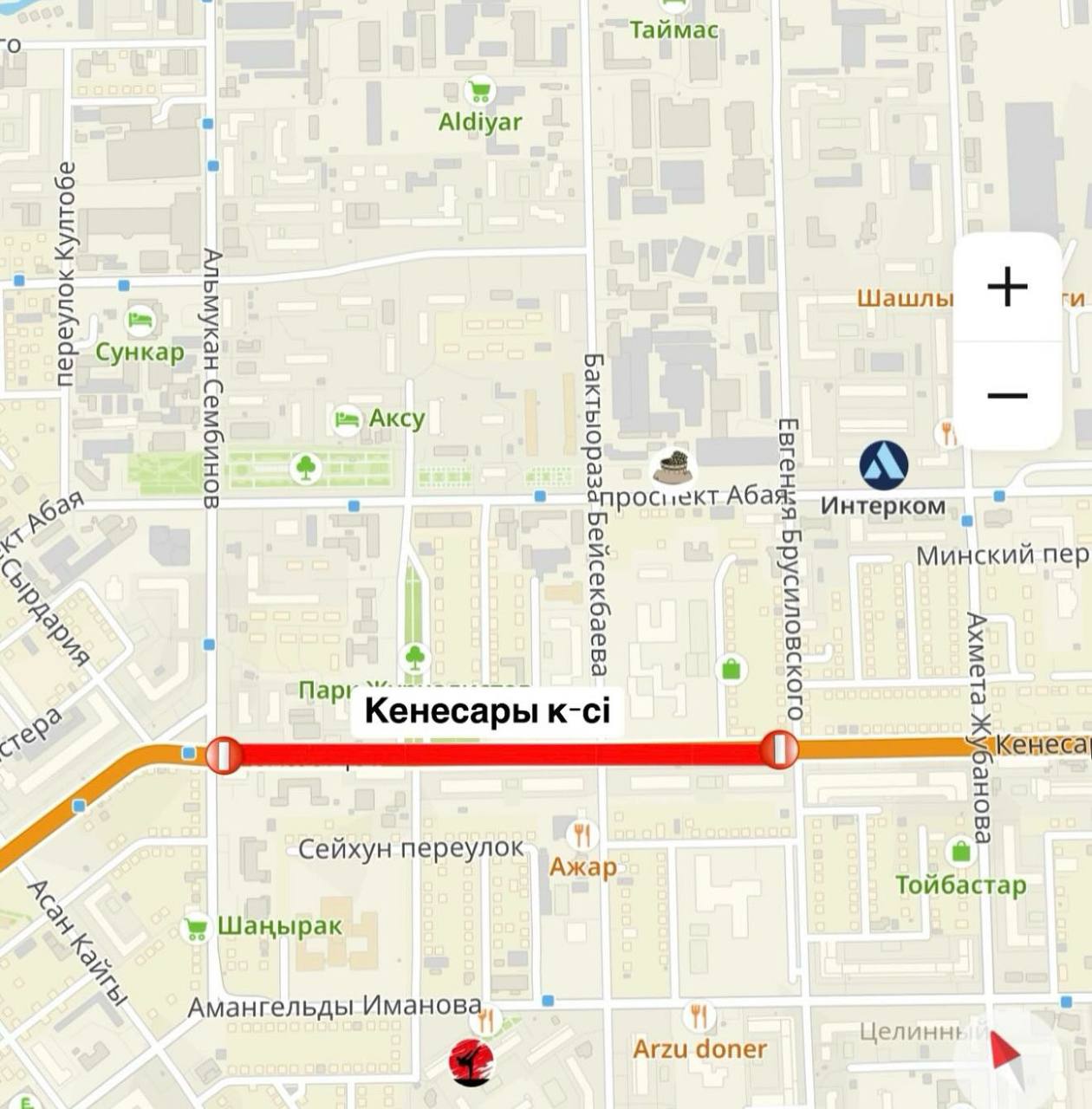 Движение по улице Кенесары на участке от улицы Сембинова до улицы Брусиловского полностью перекроют до 29 мая, сообщили в управлении транспорта и развития дорожно-транспортной инфраструктуры Астаны. Там продолжается средний ремонт дороги.