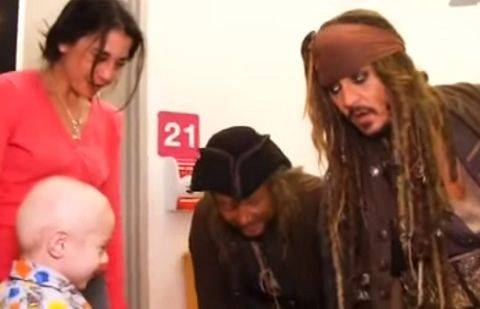 Джонни Депп не в первый раз приезжает в образе пирата Джека Воробья к детям в больницу.