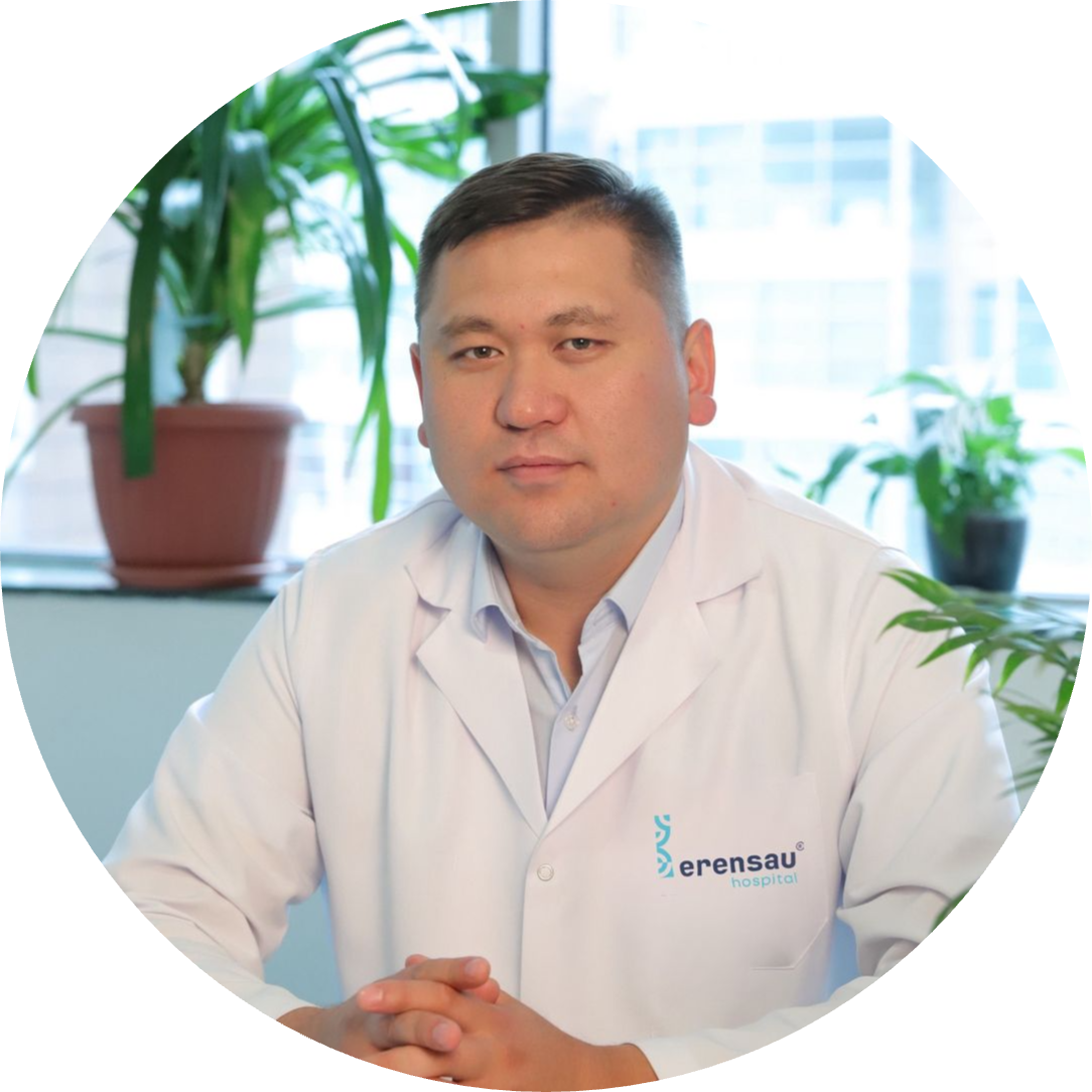 Слямов Кенесары Кенжагалиевич – врач анестезиолог-реаниматолог Erensau Hospital. Окончил Казахстанско-Российский медицинский университет: бакалавриат по специальности "Общая медицина", интернатуру по педиатрии, резидентуру по анестезиологии и реаниматологии, включая детскую. Профессиональный стаж более 8 лет. Работал врачом-анестезиологом-реаниматологом в крупных медицинских центрах Алматы, в настоящее время продолжает практическую деятельность в Erensau Hospital. Проходил курсы повышения квалификации по актуальным вопросам реаниматологии в акушерстве, базовой реанимации (BLS & AED), методам экстракорпоральной детоксикации в интенсивной терапии.