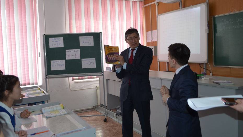 Ерлан Сагадиев рассказал старшеклассникам о системе образования страны, реализации государственной национальной стратегии. При этом и чиновник, и школьники разговаривали на английском языке. Глава МОН спрашивал у ребят, тяжело ли им даётся учёба на трёх языках.