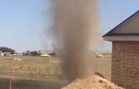 Второй за сутки смерч выклыдывают в сеть алматинцы. Жители Актобе в степи тоже сняли подобное явление.