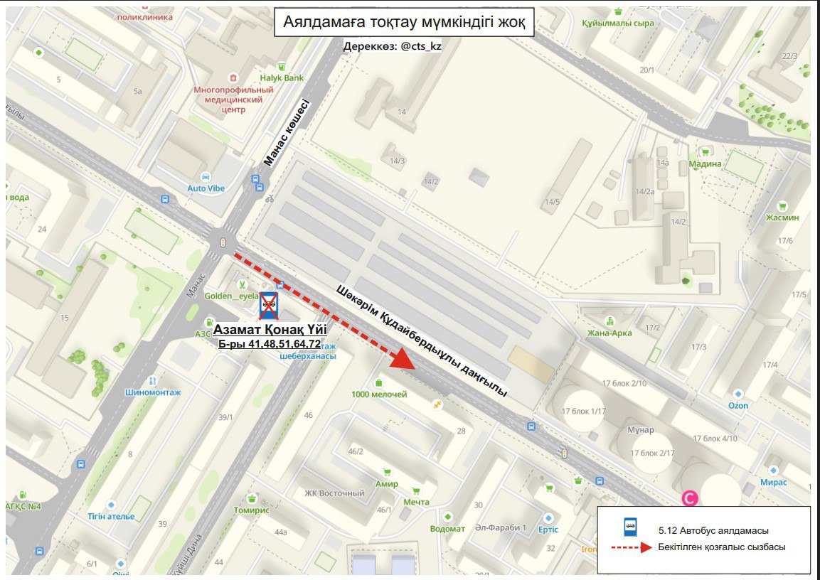 Компания также уведомила о перекрытии проезда к остановочному пункту "Азамат Қонақ Үйі".