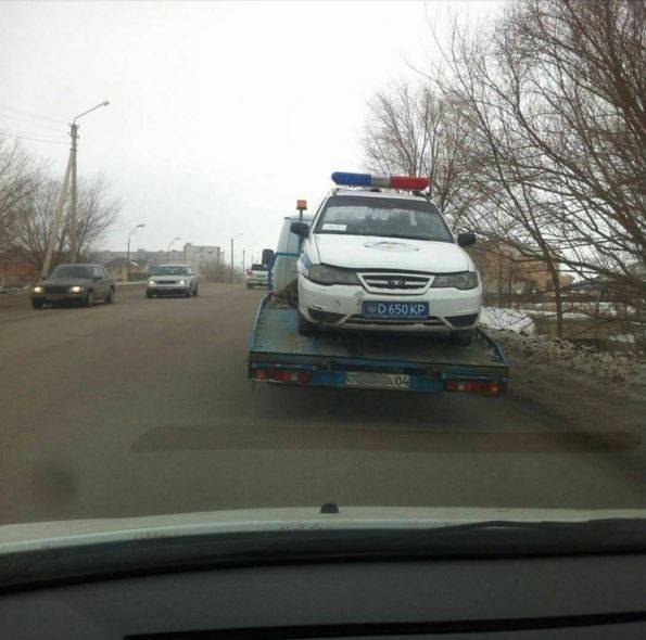 Редчайший кадр запечатлел на камеру участник сообщества Zello в Актобе. Полицейскую машину погрузили на эвакуатор и увезли с места стоянки. В комментариях к посту предполагают, что автомобиль полицейских просто-напросто сломался и на эвакуаторе направляется на ближайшую СТО. Но очевидцы сообщают, что стражи порядка действительно поставили машину под запрещающим знаком, отдают честь эвакуаторщику, называя его машину "эвакуатором, который смог".