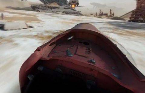 Первым роликом подобного типа стал трейлер из "Звездных войн". Как сообщает Lenta.ru, он показывает эпизод из готовящегося к выходу фильма "Звездные войны: Пробуждение силы". Отмечается, что наблюдать за происходящим из кабины транспортного средства можно в любом направлении.