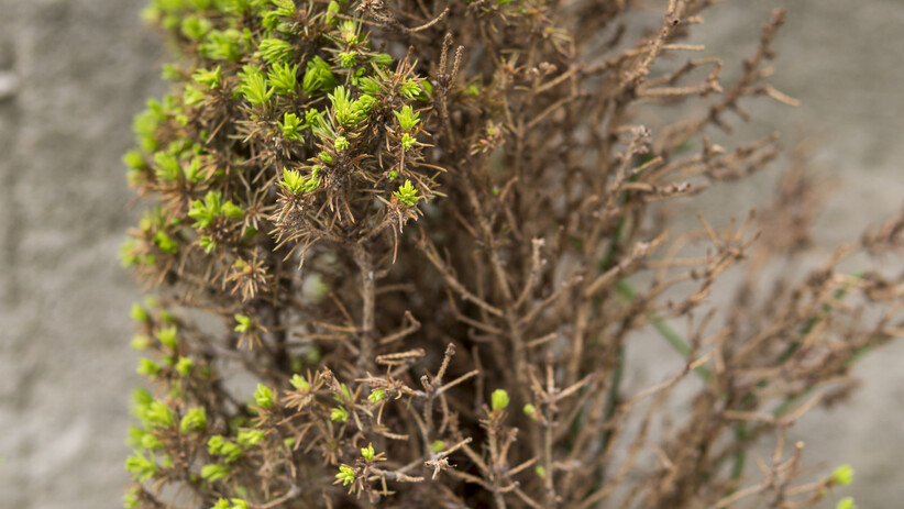 Жители города обратили внимание на засыхающие ели, в частности по улице Жарокова в северном направлении, выше улицы Утепова, а также по улице Жибек жолы. Специалисты называли возможной причиной усыхания хвойных пород резкую смену температуры воздуха. Экспертиза выявила поражение хвойных пород комплексом грибов Alternaria, однако экологи считают, что ослабление деревьев вызвали солнечный ожог либо уплотнение почвы и нехватка питательных элементов.