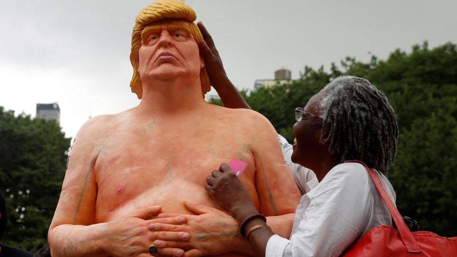 Пластмассовые статуи голого кандидата в президенты Дональда Трампа появились в крупнейших городах США, передаёт Reuters.