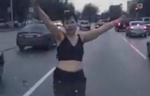 Через мессенджер WhatsApp распространили видео, на котором женщина на дороге в Алматы продемонстрировала удивлённым, но довольным водителям откровенный танцевальный номер.