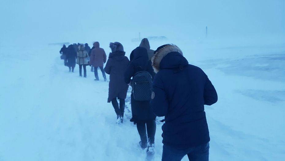 Люди были вынуждены выйти из автобуса и пройти более километра пешком по большим сугробам. Рабочий транспорт не смог проехать из-за застрявших на трассе других пассажирских автобусов.