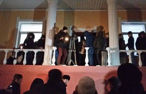 Люди сломали перила в здании. В суд вызвали "скорую помощь".